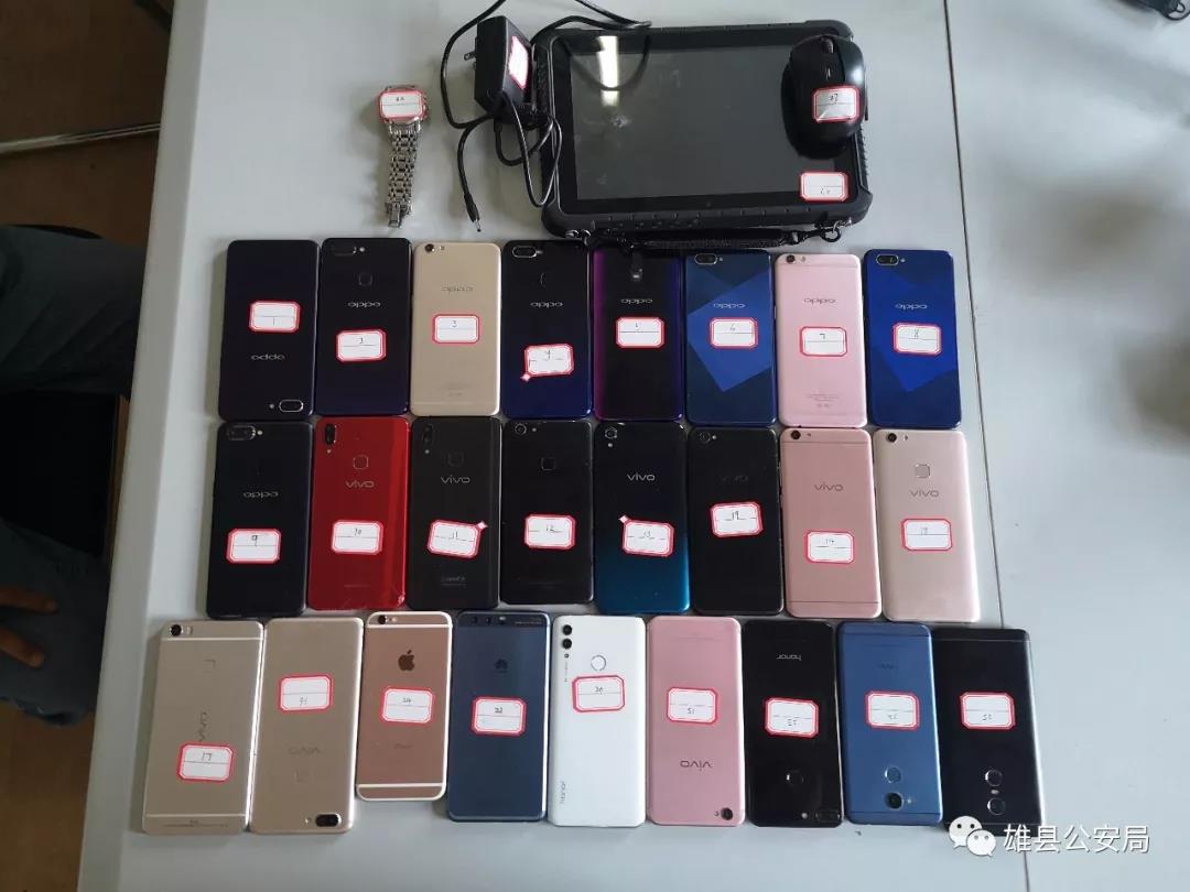 2019年3月中旬以来,京雄高铁站接连发生多起施工工人手机被盗案。接到报警后,雄县公安局高度重视,迅速成立专案组全力侦破。经专案组民警调查走访、缜密侦查,于2019年5月20日将正在销赃的犯罪嫌疑人牛某某、牛某抓获,成功追回被盗手机29部,笔记本电脑2台,手表1块,电线13盘。
