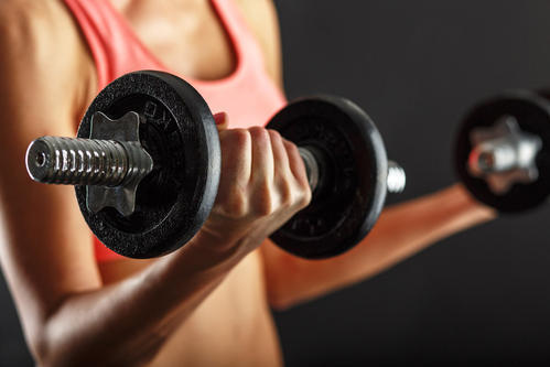 保持脊椎直立,一手握住矿泉水瓶(或哑铃),屈肘与肩平行,呼气时慢慢向上举,直至大臂贴紧耳朵,吸气时再慢慢放回原位,每次坚持20秒,每天做5~10分钟即可。
