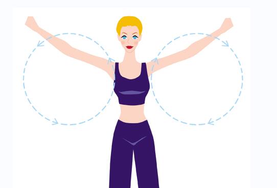 画圆也是一个不错的瘦胳膊运动。画圆时腰腹挺直,双手伸直画圆,先向内侧画20个,然后再外侧画20个,要动用腰腹的力量自然地画圆,以消耗手臂上多余的脂肪,让手臂富有美感。