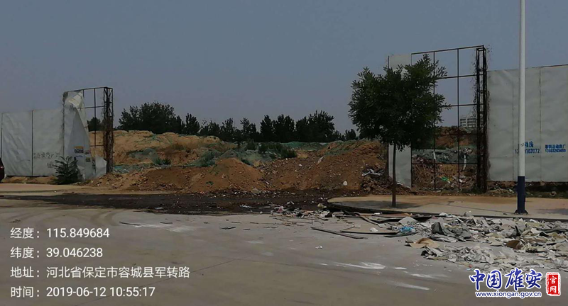 4、容城县县城军转路到澳森南大街交叉口,发现大量建筑垃圾、生活垃圾,并存在露天土堆未覆盖,杂草丛生、残垣断壁等现象。