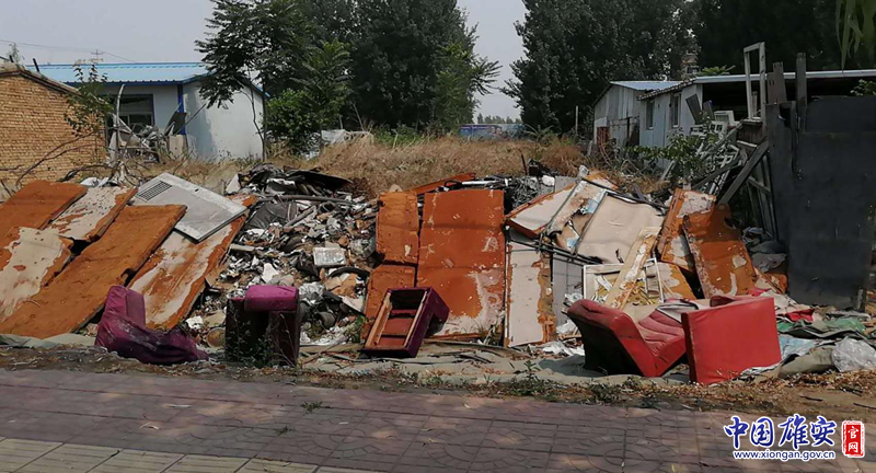 5、容城县县城西部的容固路路北,腾达汽车城附近,发现生活垃圾堆积、残垣断壁情况。