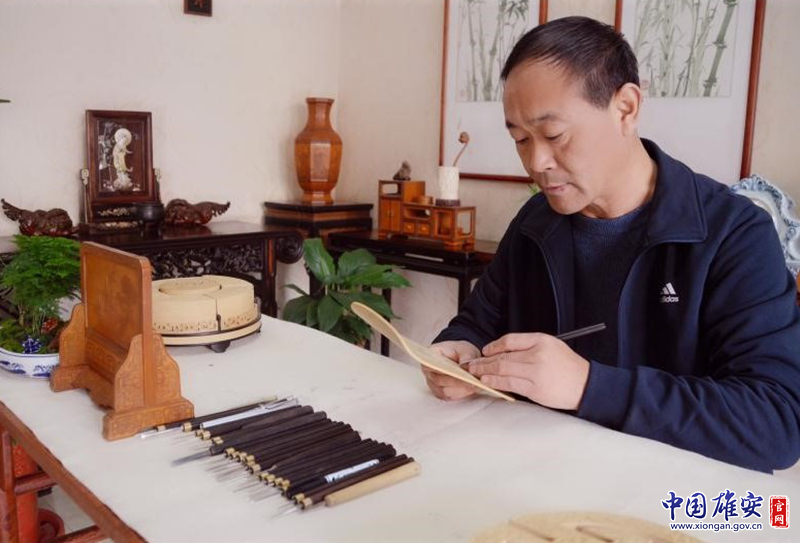 雄安展区京簧竹刻手艺人。雄安新区公共服务局供图