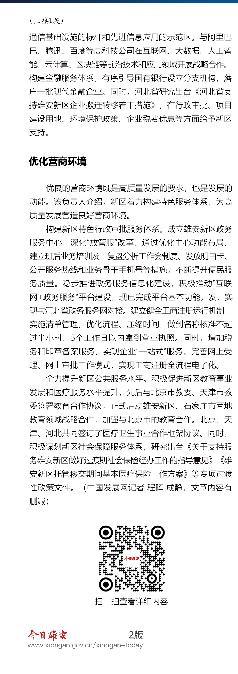 雄安新区规划建设有三个重点,即打牢基础、开放创新与营商环境。