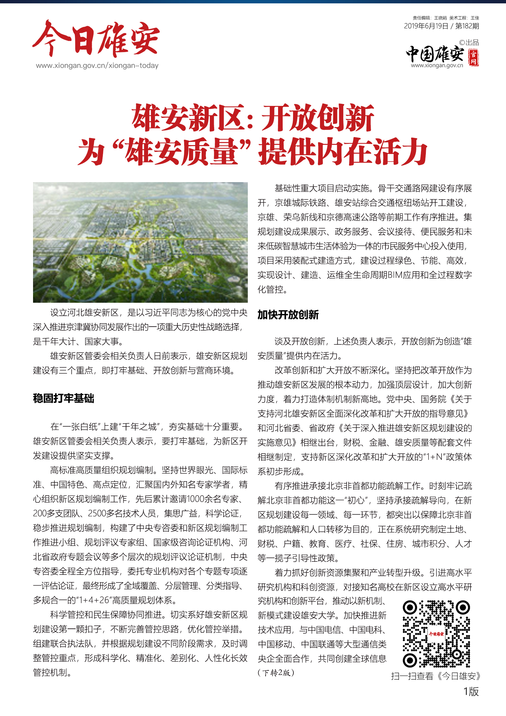 雄安新区:开放创新为“雄安质量”提供内在活力