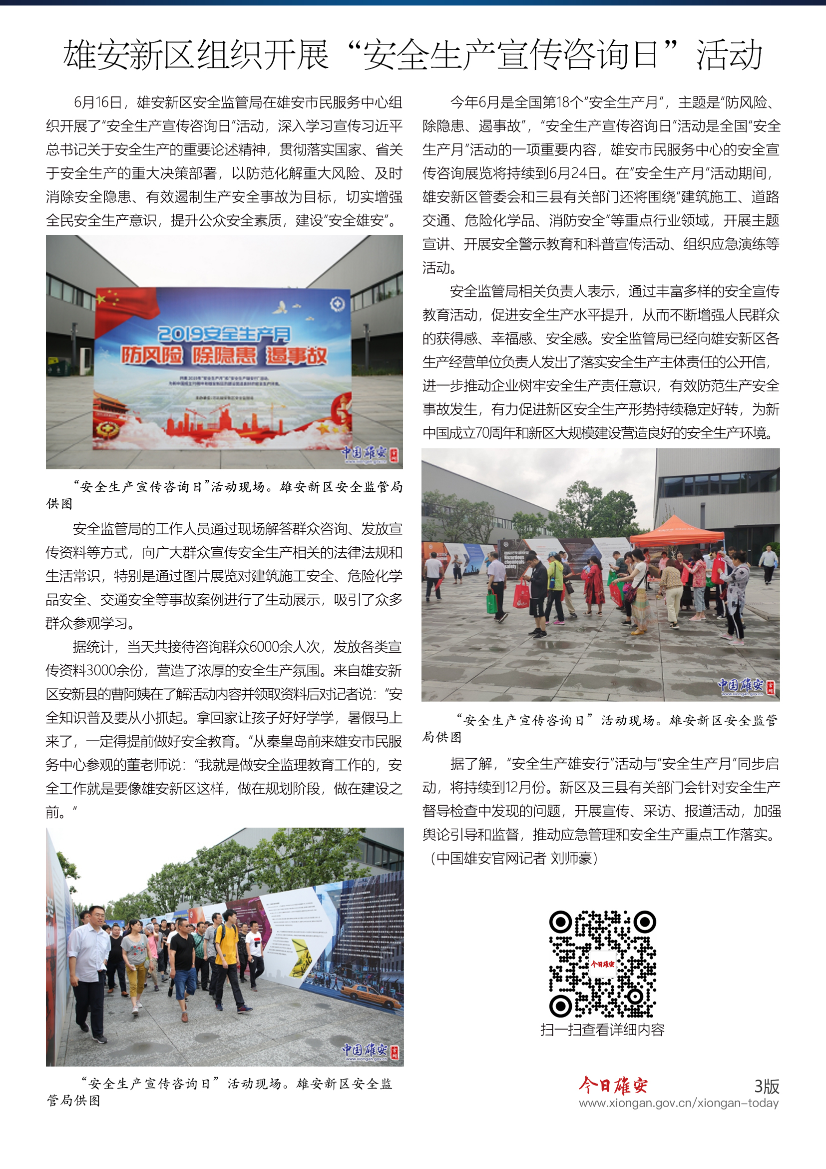 学政策 讲案例 谋创新——雄安新区组织开展“安全生产宣传咨询日”活动
