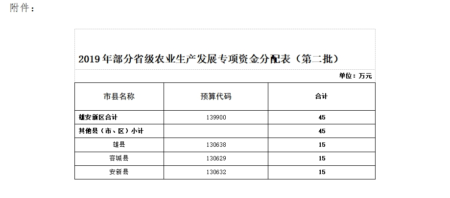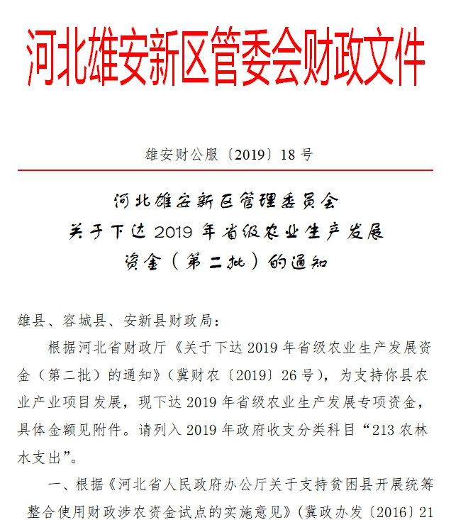 现将雄安新区下达2019年省级农业生产发展资金(第二批)资金分配结果予以公告,如有异议,请向以下部门提出意见。