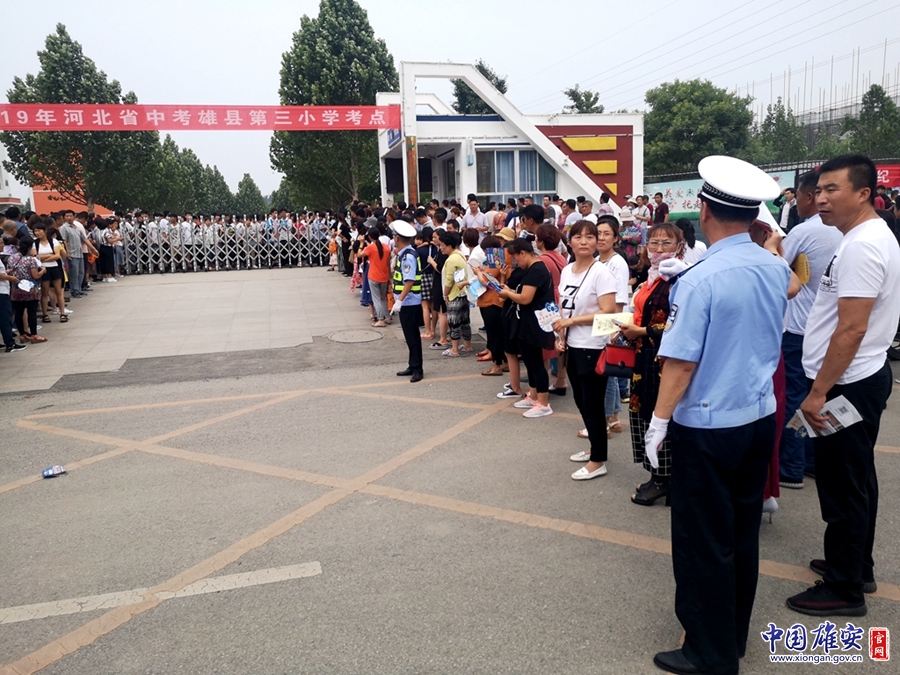 6月21日,雄县交警在考点门口维护交通秩序。雄县县委宣传部供图