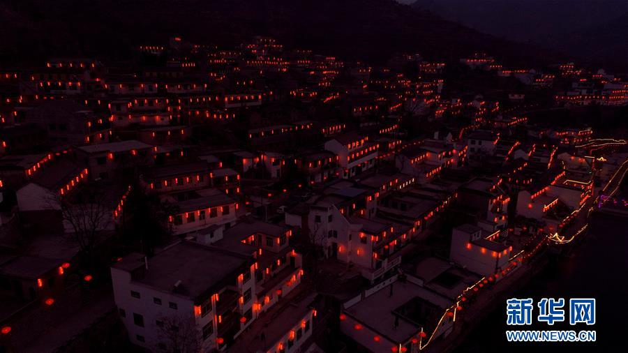 这是无人机拍摄的河北省涉县井店镇刘家村夜景(1月30日摄)。