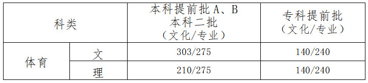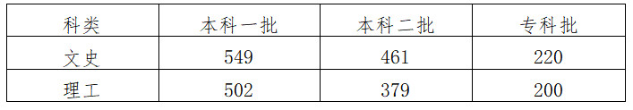 高水平运动队考生高考文化成绩控制分数线:文史461分,理工379分;对于少数体育测试成绩特别突出的高水平运动队考生,文化成绩控制分数线:文史299分,理工246分。