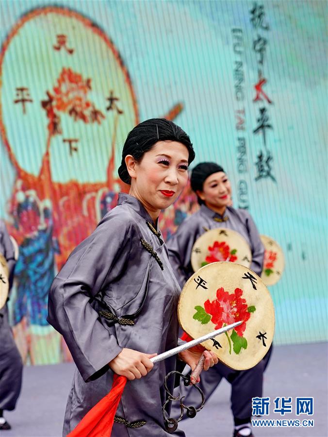 6月26日,秦皇岛市抚宁区太平鼓表演队的演员在表演《原生态太平鼓》。当日,由京津冀三省市非物质文化遗产保护中心联合主办的“京津冀特色非物质文化遗产项目展示展演”在河北省秦皇岛市抚宁区开幕。此活动为期两天,将有来自京津冀地区的19支队伍共300余名演员为观众献上传统非遗表演。新华社记者 杨世尧 摄