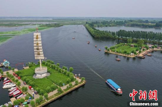 6月26日,河北省雄安新区白洋淀景区,淀上的游船往来穿梭。正值暑期,每天都有来自全国各地的游客前来观光。中新社记者 于海洋 摄