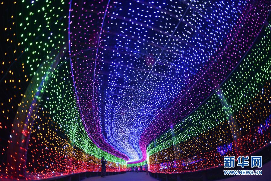 河北省沙河市红石沟现代农业园区“梦幻灯光节”的一处景观(6月28日摄)。 6月下旬以来,河北省沙河市红石沟现代农业园区举办“梦幻灯光节”,光影闪烁交织出梦幻的风景,吸引各地游客前来观赏游玩。新华社记者 牟宇 摄