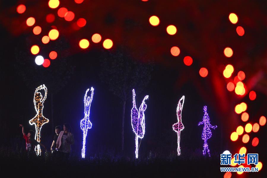 6月28日,游客在河北省沙河市红石沟现代农业园区“梦幻灯光节”上游玩。 6月下旬以来,河北省沙河市红石沟现代农业园区举办“梦幻灯光节”,光影闪烁交织出梦幻的风景,吸引各地游客前来观赏游玩。新华社记者 牟宇 摄