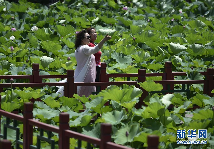 6月29日,游人在香河县第一城景区内游览赏荷。 夏日时分,位于河北省香河县第一城景区内的荷花渐次绽放,吸引众多游人前来赏荷拍照。新华社记者 鲁鹏 摄