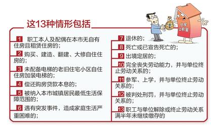 未配备电梯的老旧住宅小区自住住房加装电梯的等13种情形下,职工可申请提取其住房公积金
