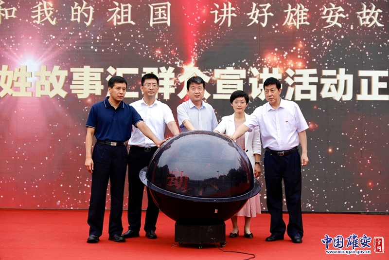 领导嘉宾上台触摸启动球,共同启动“我和我的祖国——讲好雄安故事”365百姓故事汇群众宣讲活动。中国雄安官网记者马梦迪 摄