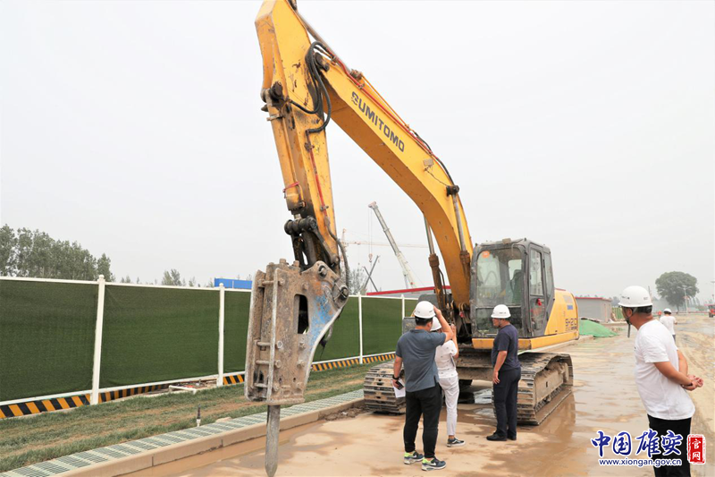 检查组正在对施工车辆排放进行检查。中国雄安官网记者李鑫 摄