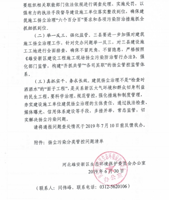 针对此次督导检查所发现的问题,雄安新区生态环境保护委员会办公室向三县政府印发通报,同时由中国雄安官网对外发布检查情况,督促各建设施工单位落实建筑扬尘治理主体责任,持续改善新区大气环境质量。