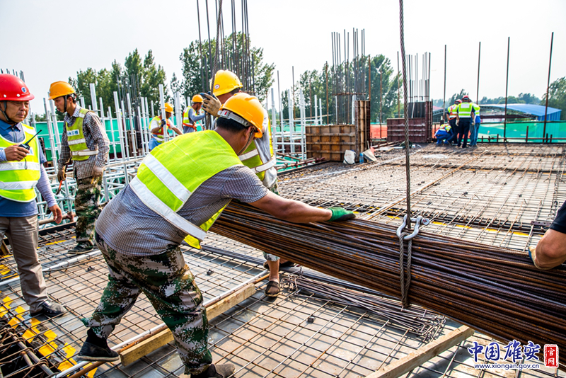 白洋淀引黄大树刘泵站工程施工现场,新区建设者冒着酷暑炎热,辛苦付出,确保按时完成工程任务。中国雄安官网记者马梦迪 摄