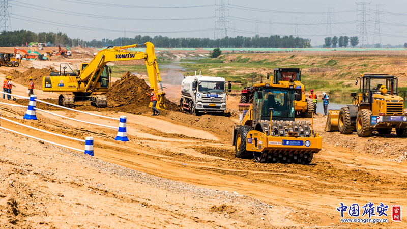 主汛期即将来临,南拒马河防洪治理工程施工现场正在进行坡脚格宾石笼防护作业,确保雄安新区安全度汛。图为南拒马河防洪治理工程现场。中国雄安官网记者马梦迪 摄