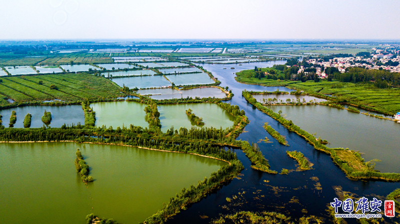 白洋淀引黄大树刘泵站工程自2018年10月10日正式开工建设,施工过程中,泵站实体工程与5D施工BIM模型同步建立,经过120余天紧张的施工,2019年2月1日零时起,泵站三台水泵陆续启动,至2月28日上午9时,不间断运行657小时,圆满完成向白洋淀进行生态补水3500万立方米的既定目标。图为航拍白洋淀引黄大树刘泵站工程现场。中国雄安官网记者马梦迪 摄