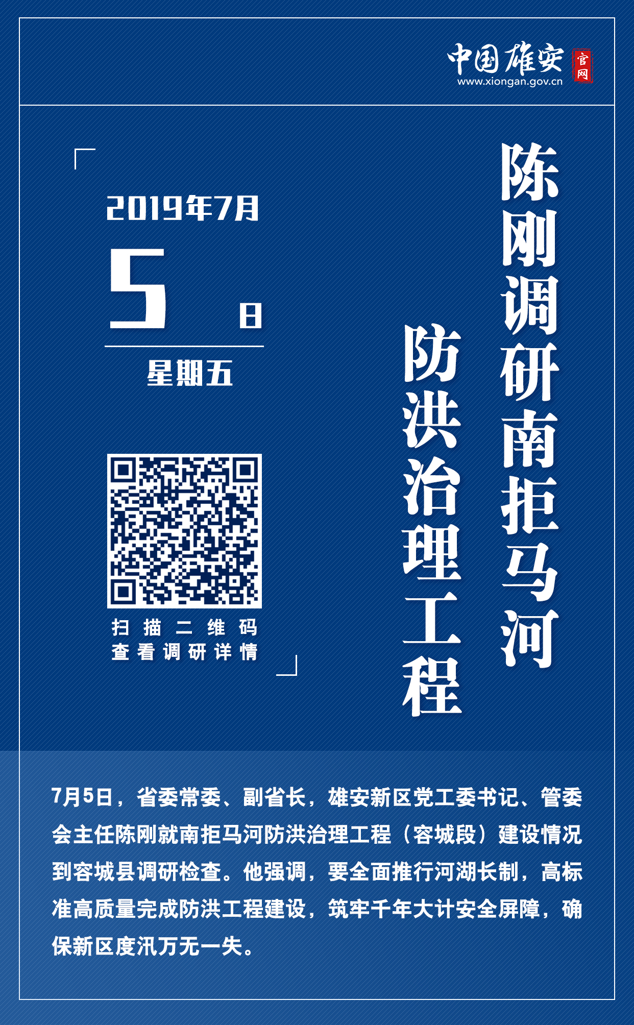 7月5日,省委常委、副省长,雄安新区党工委书记、管委会主任陈刚就南拒马河防洪治理工程(容城段)建设情况到容城县调研检查。