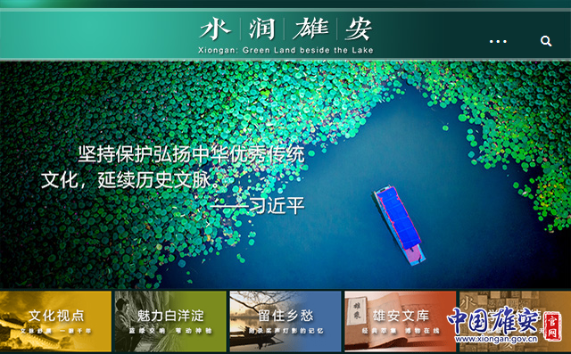 该网站作为雄安新区文化建设的重要载体,由文化视点、魅力白洋淀、留住乡愁、雄安文库、学术经纬五大板块构成。