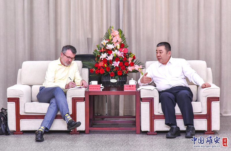 雄安新区党工委委员、管委会副主任刘树军(右)与斯科特•弗格森(左)进行座谈。李达 摄