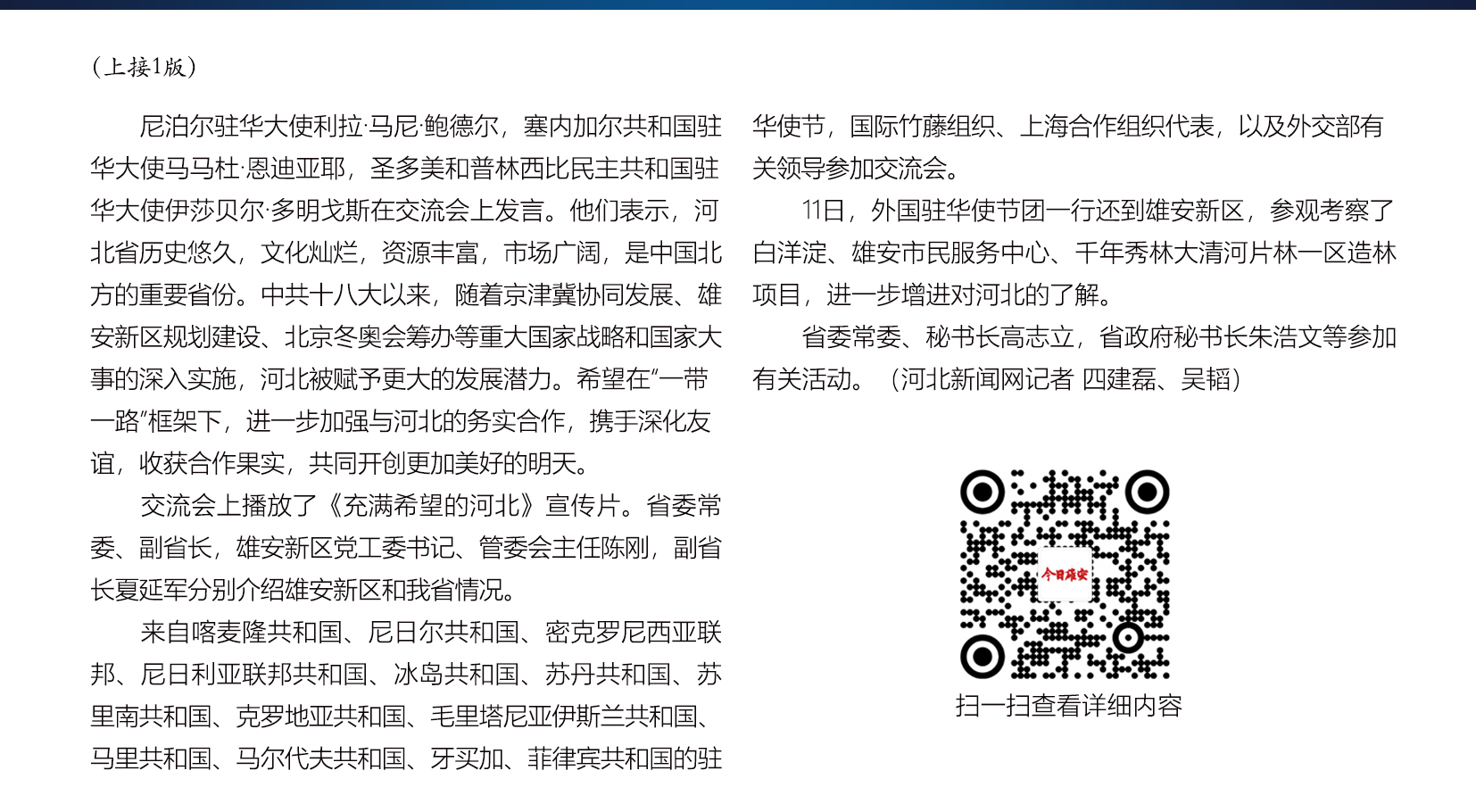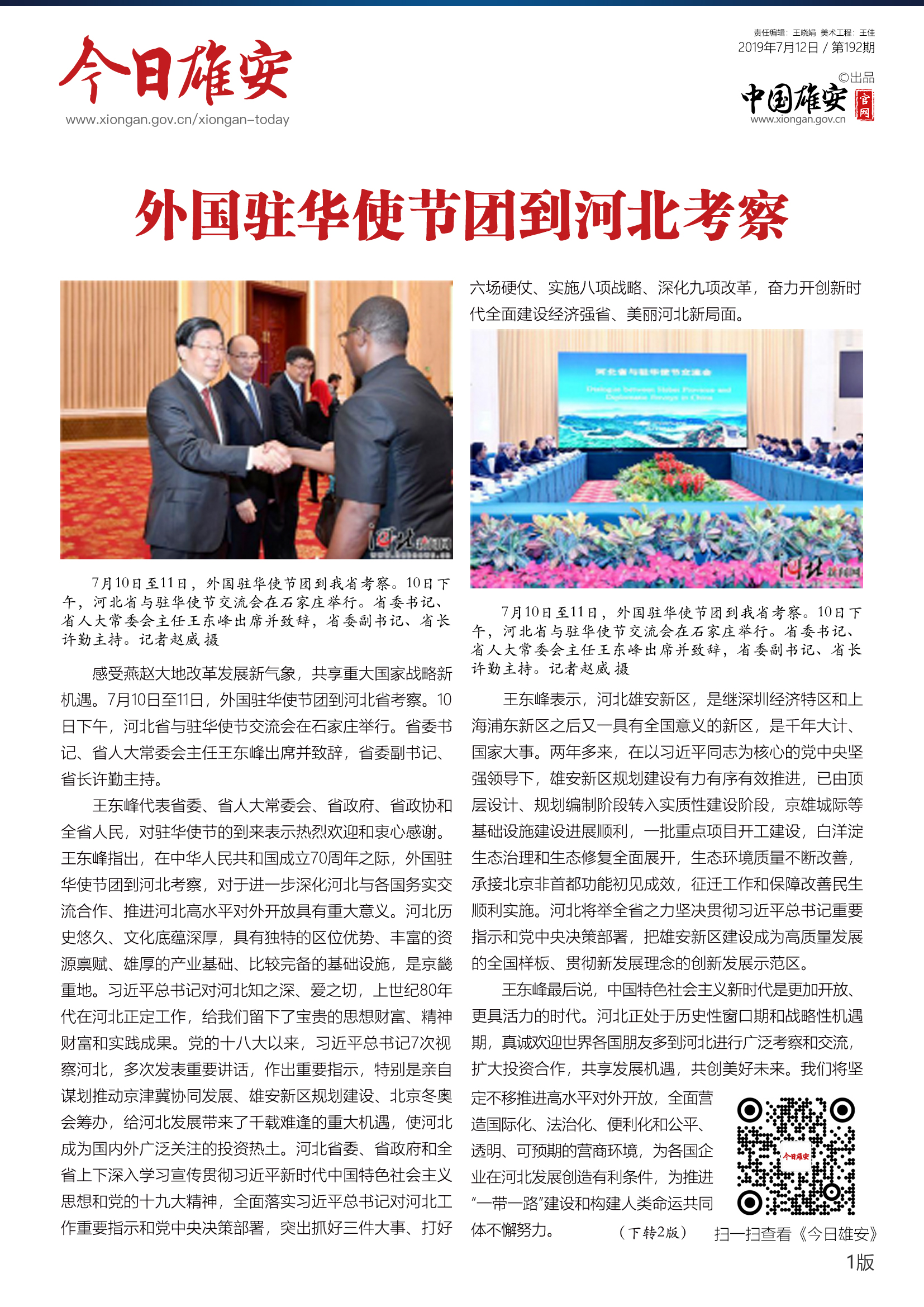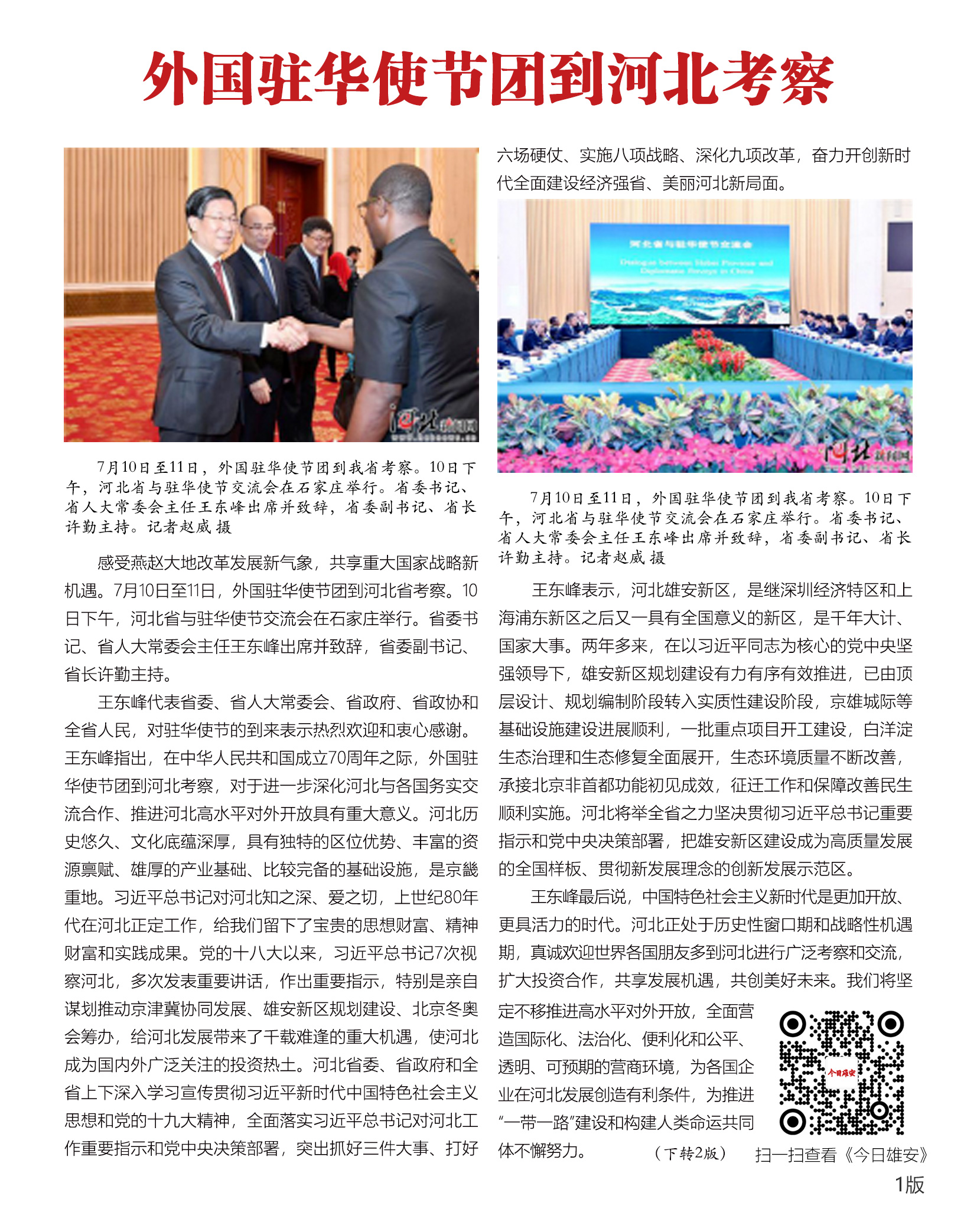 7月10日至11日,外国驻华使节团到河北省考察。10日下午,河北省与驻华使节交流会在石家庄举行。