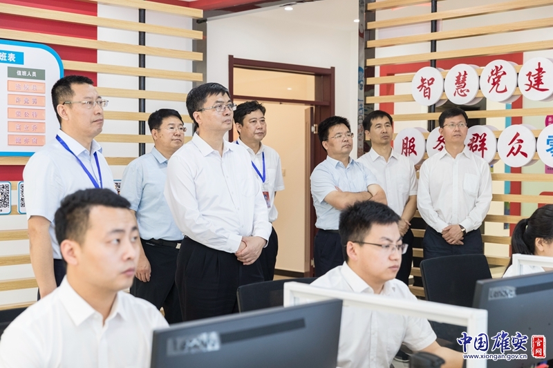 陈刚一行来到雄县党建服务中心,详细了解智慧党建平台建设。中国雄安官网记者李鑫 摄