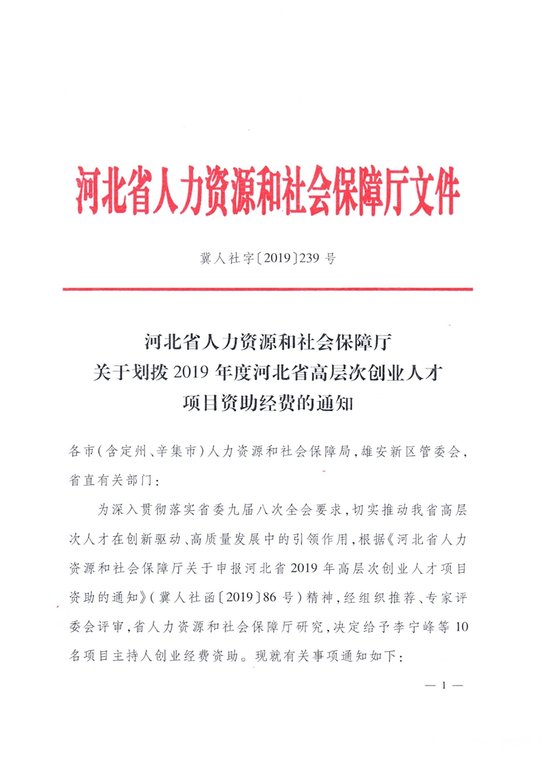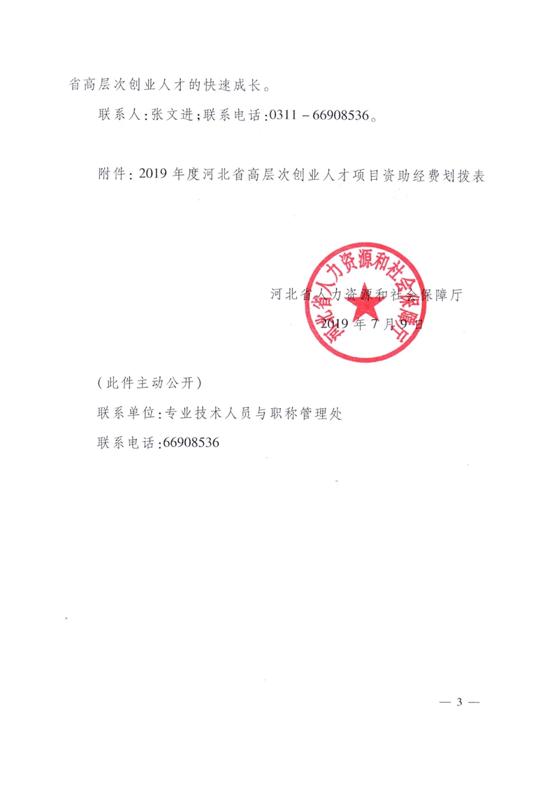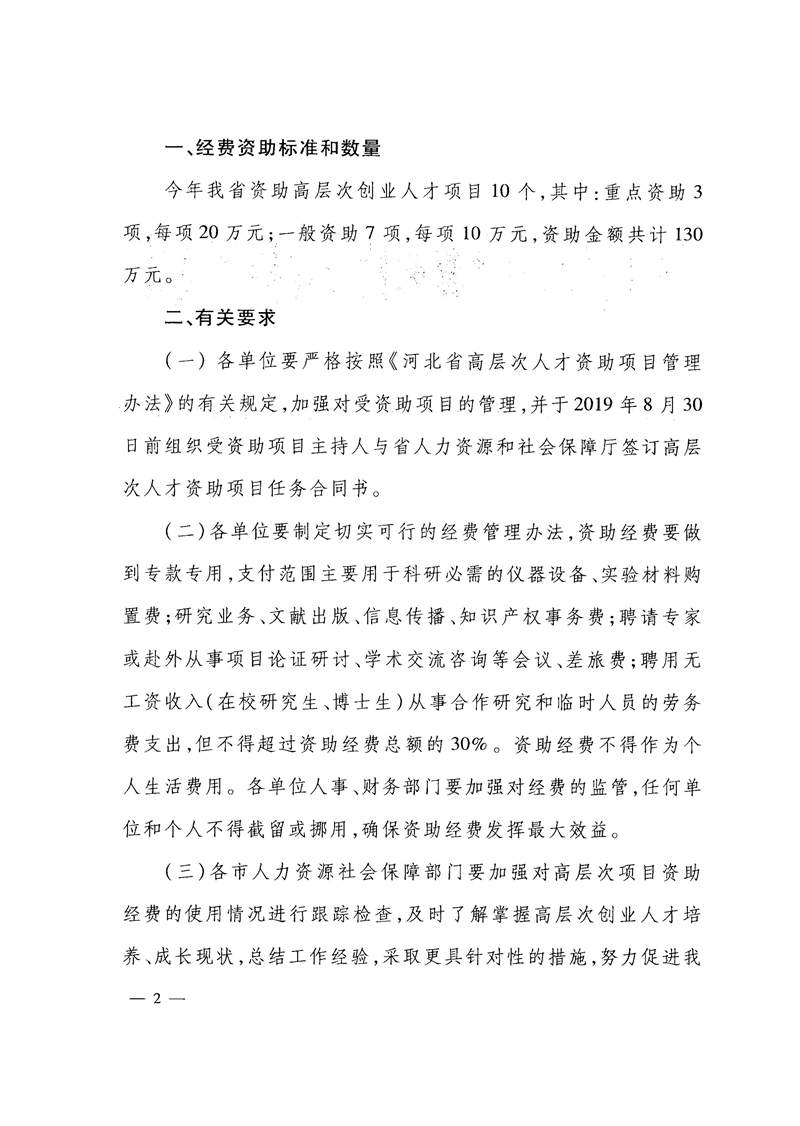 河北人社网近日发布关于划拨2019年度河北省高层次创业人才项目资助经费的通知。