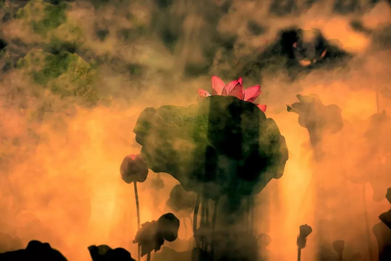 “惟有绿荷红菡萏,卷舒开合任天真。”