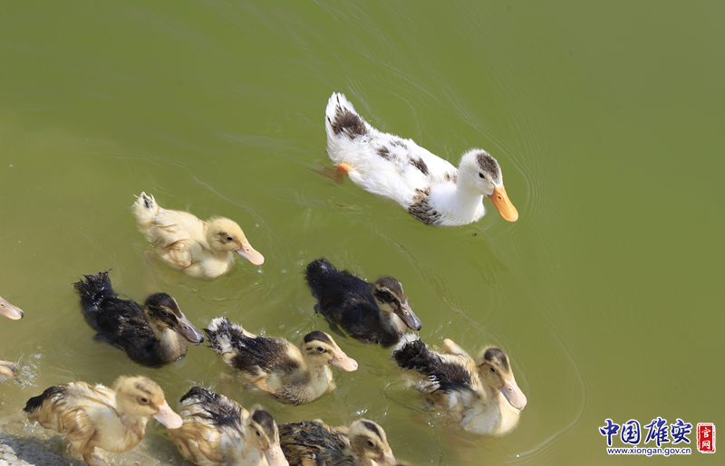 小公园池塘里的小鸭子。中国雄安官网记者张斌 摄