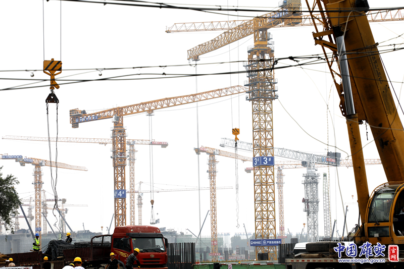 雄县昝岗镇关李马浒村地处京雄城际铁路雄安站工程建设占地范围,目前,村庄附近就是塔吊林立、热火朝天的建设场面。中国雄安官网记者毛鹤然 摄