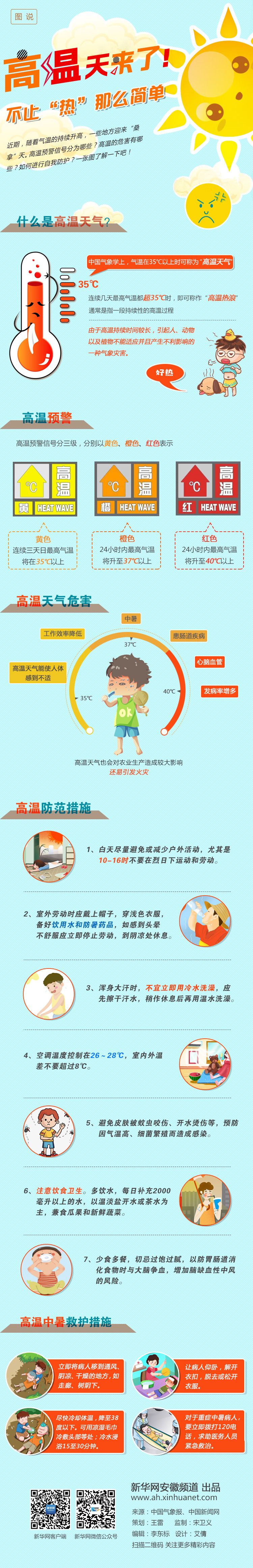 近期,随着气温的持续升高,一些地方迎来“桑拿”天。高温预警信号分为哪些?高温的危害有哪些?如何进行自我保护?一张图了解一下吧!