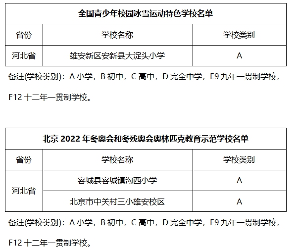 7月23日,教育部网站公布全国青少年校园冰雪运动特色学校和北京2022年冬奥会和冬残奥会奥林匹克教育示范学校名单,雄安三所学校入选。