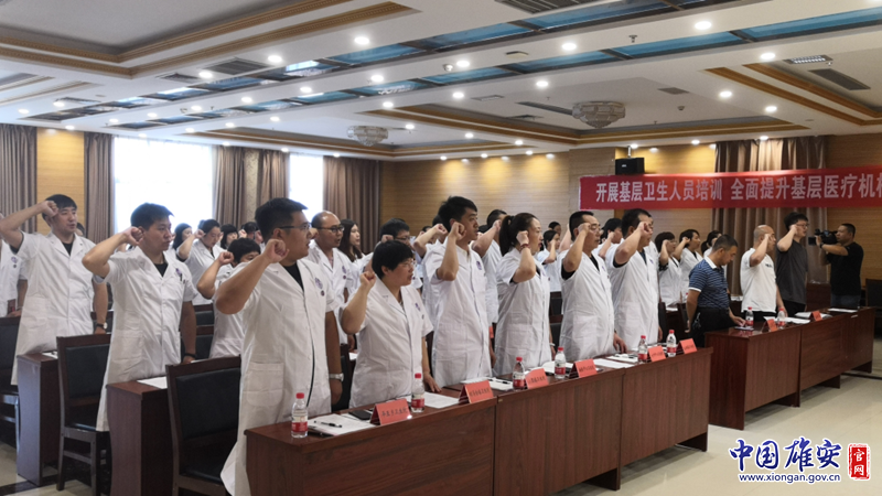 开班仪式上,全体学员在河北医科大学工作人员带领下宣读医学生誓词,并佩戴河北医科大学校徽。雄安新区公共服务局副局长桂小海表示,河北医科大学积极对接新区建设,以其专业的技术、强大的师资主动服务新区基层卫生事业发展,体现了强烈的政治责任感和历史使命感。此次培训活动将推动基层医疗卫生服务能力快速提升,提高群众就医获得感。