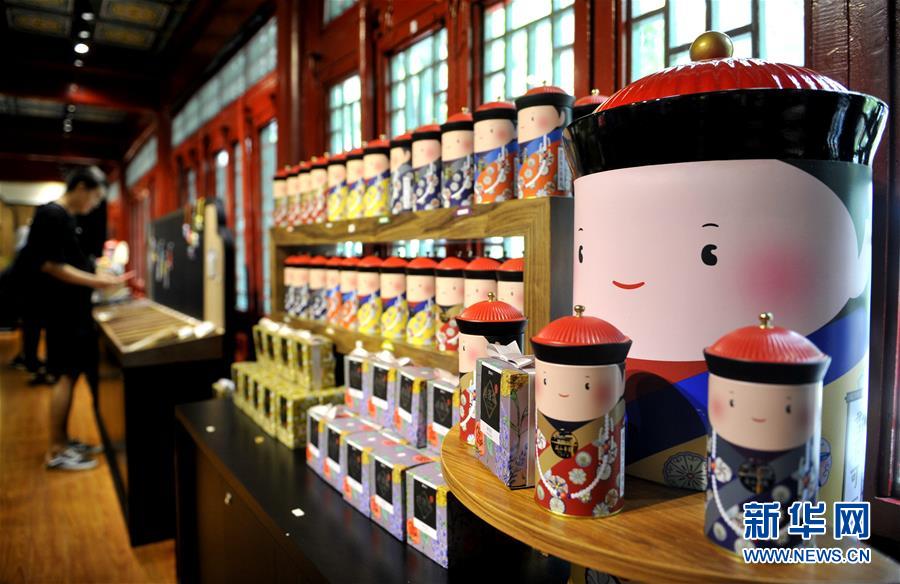 7月26日,游客在承德避暑山庄选购特色文创产品。 近年来,河北承德避暑山庄加大文创产品的研发力度,深度挖掘“皇家”元素,研发兼具山庄文化与时代特点的文创产品,受到游客青睐。新华社记者 王晓 摄