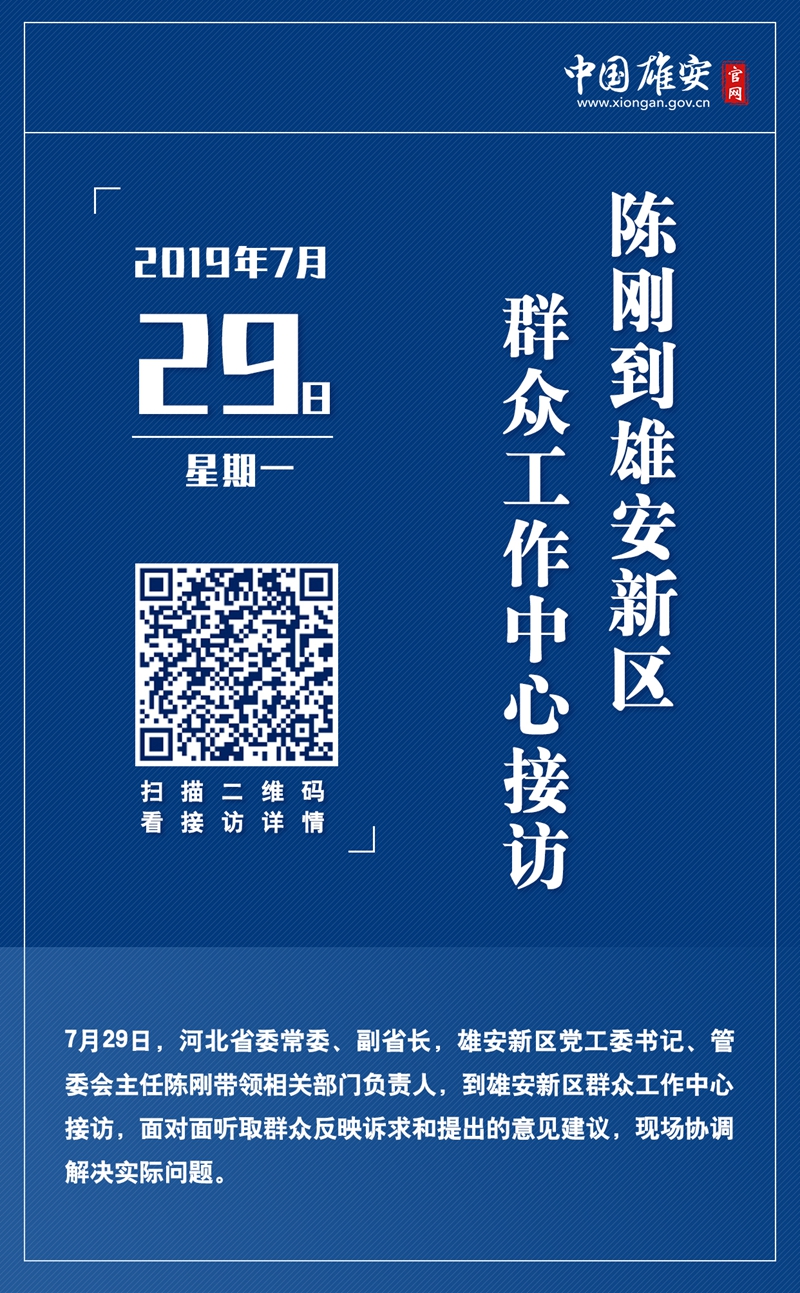 7月29日上午,省委常委、副省长,雄安新区党工委书记、管委会主任陈刚带领相关部门负责人,到雄安新区群众工作中心接访。
