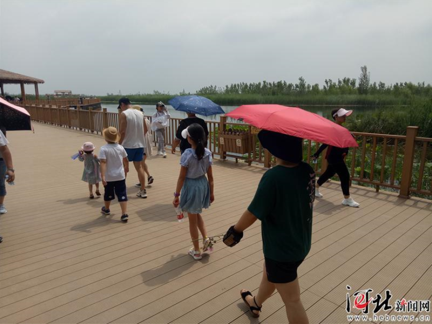 到白洋淀新安北堤木栈道游览的游客。记者吕若汐 摄