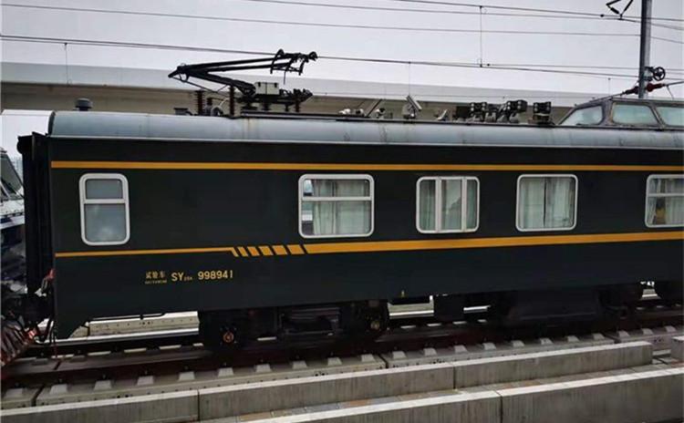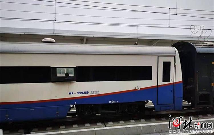 8月9日9时20分,首列京雄城际联调联试列车停靠在北京大兴站站台内,这是联调联试列车组内的轨道检查车。