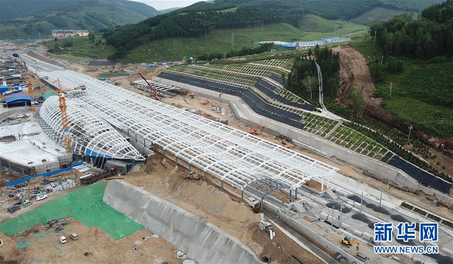 这是京张高铁崇礼支线太子城高铁站施工现场(7月16日无人机拍摄)。新华社记者 朱旭东 摄