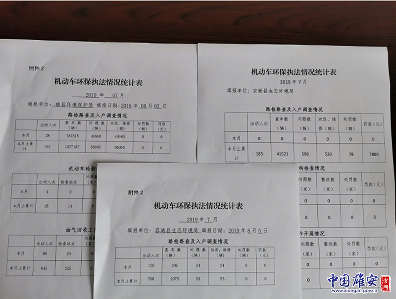 雄安新区三县机动车环保执法情况统计表。雄安新区生态环境局供图
