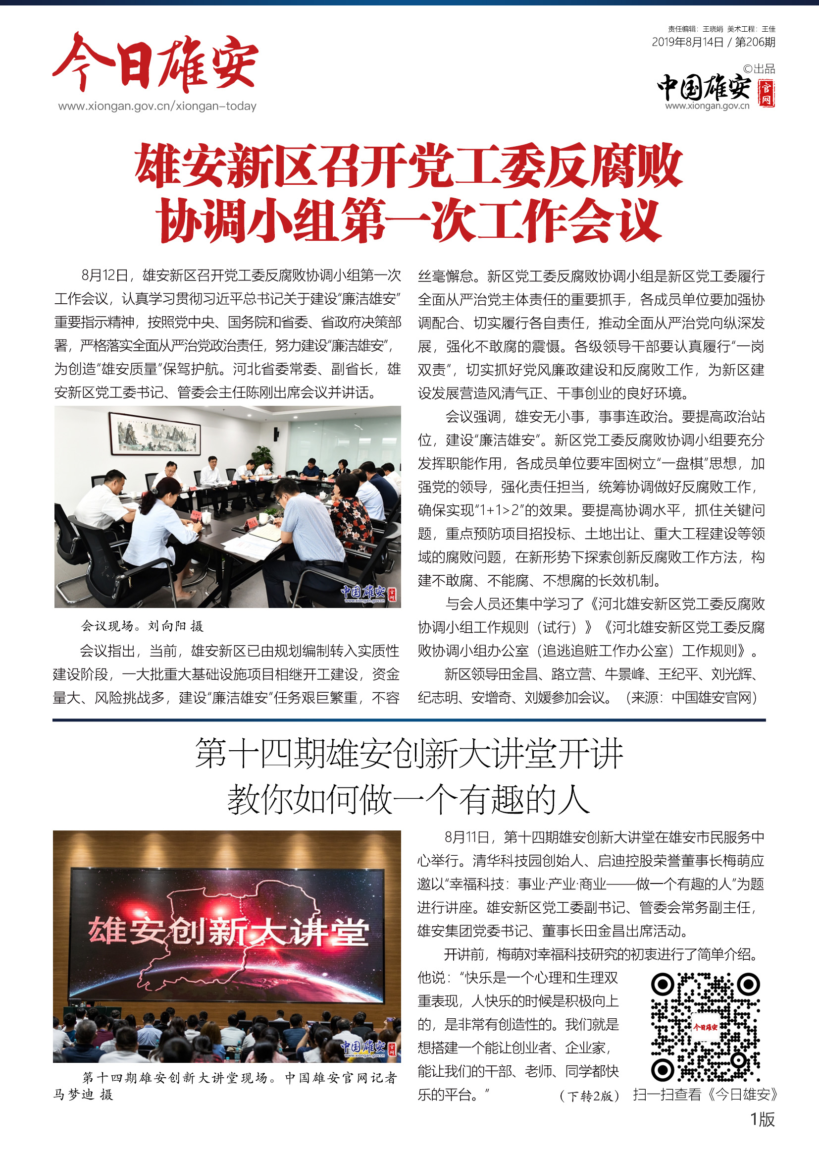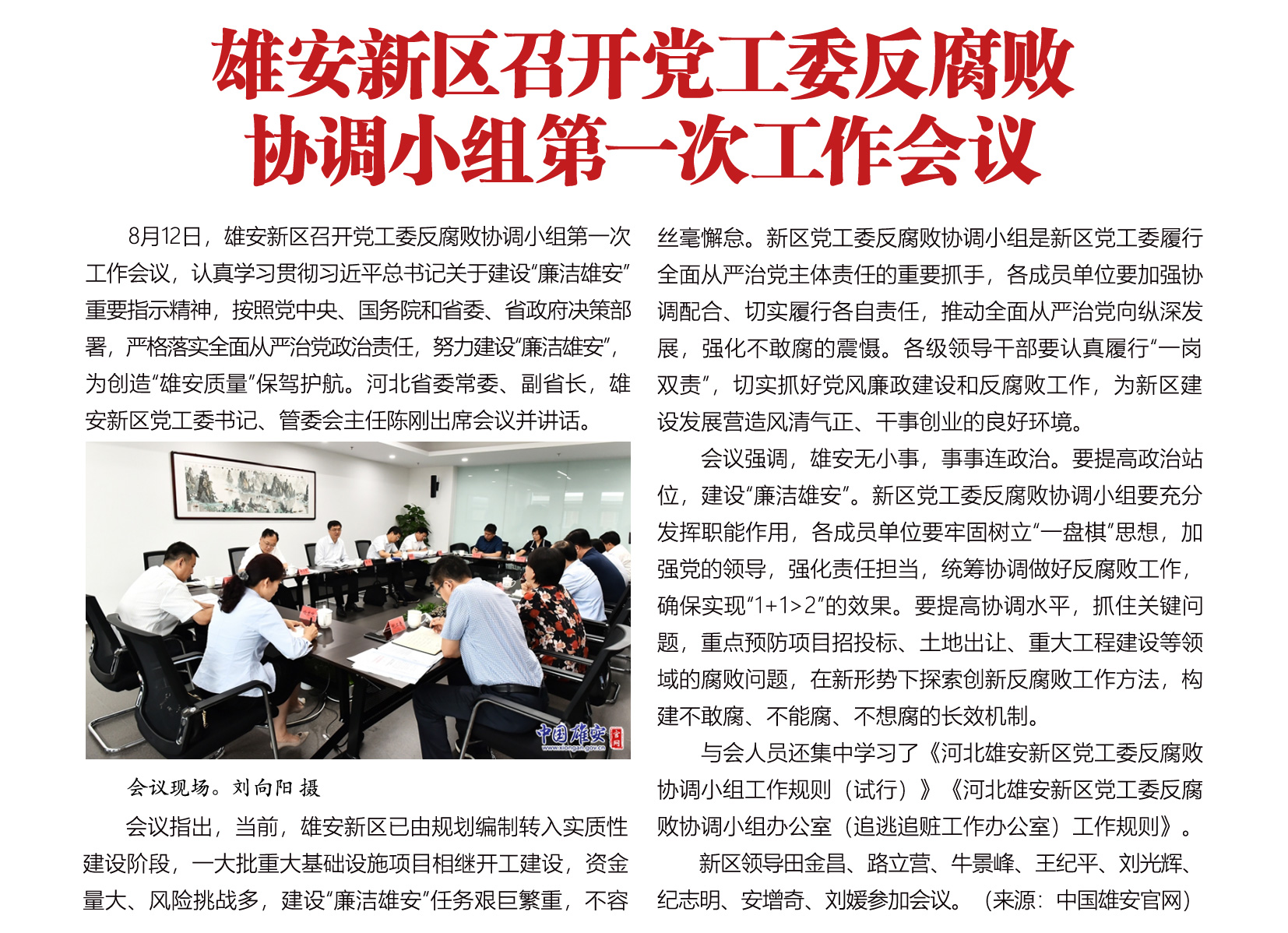 雄安新区召开党工委反腐败协调小组第一次工作会议 建设“廉洁雄安” 为创造“雄安质量”保驾护航