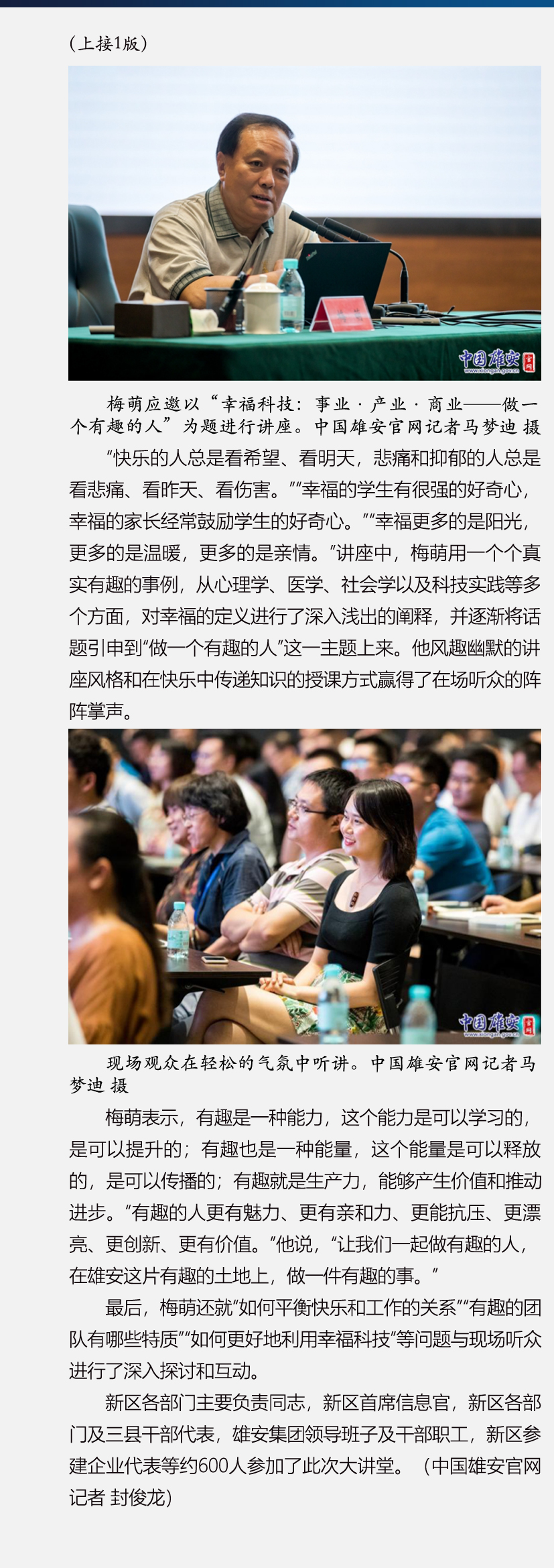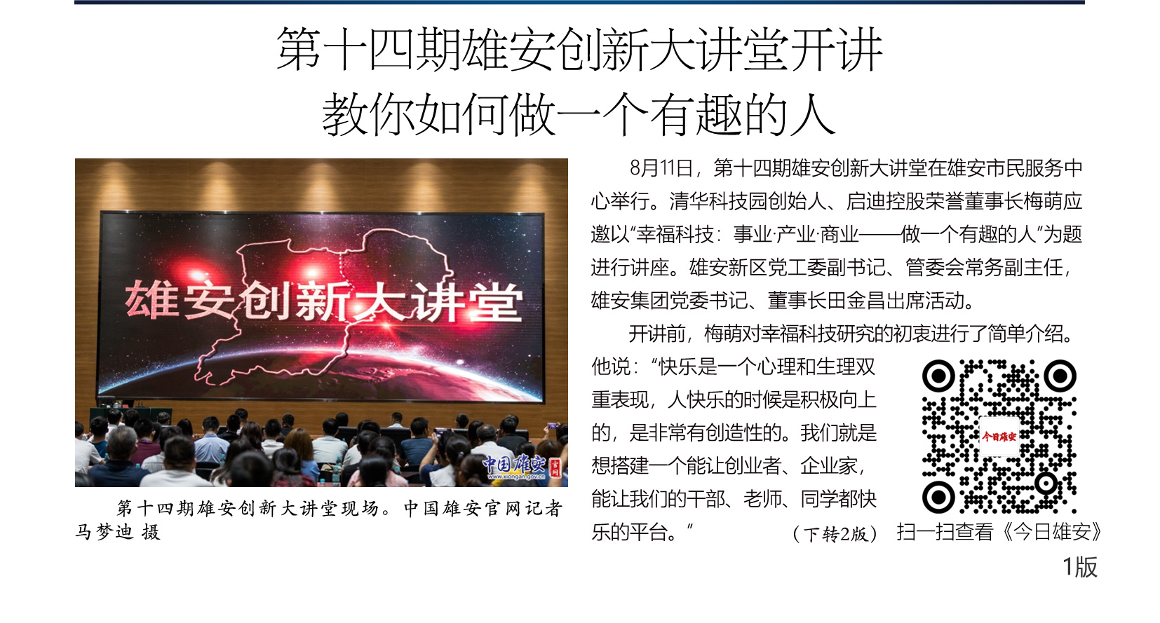 第十四期雄安创新大讲堂开讲 教你如何做一个有趣的人