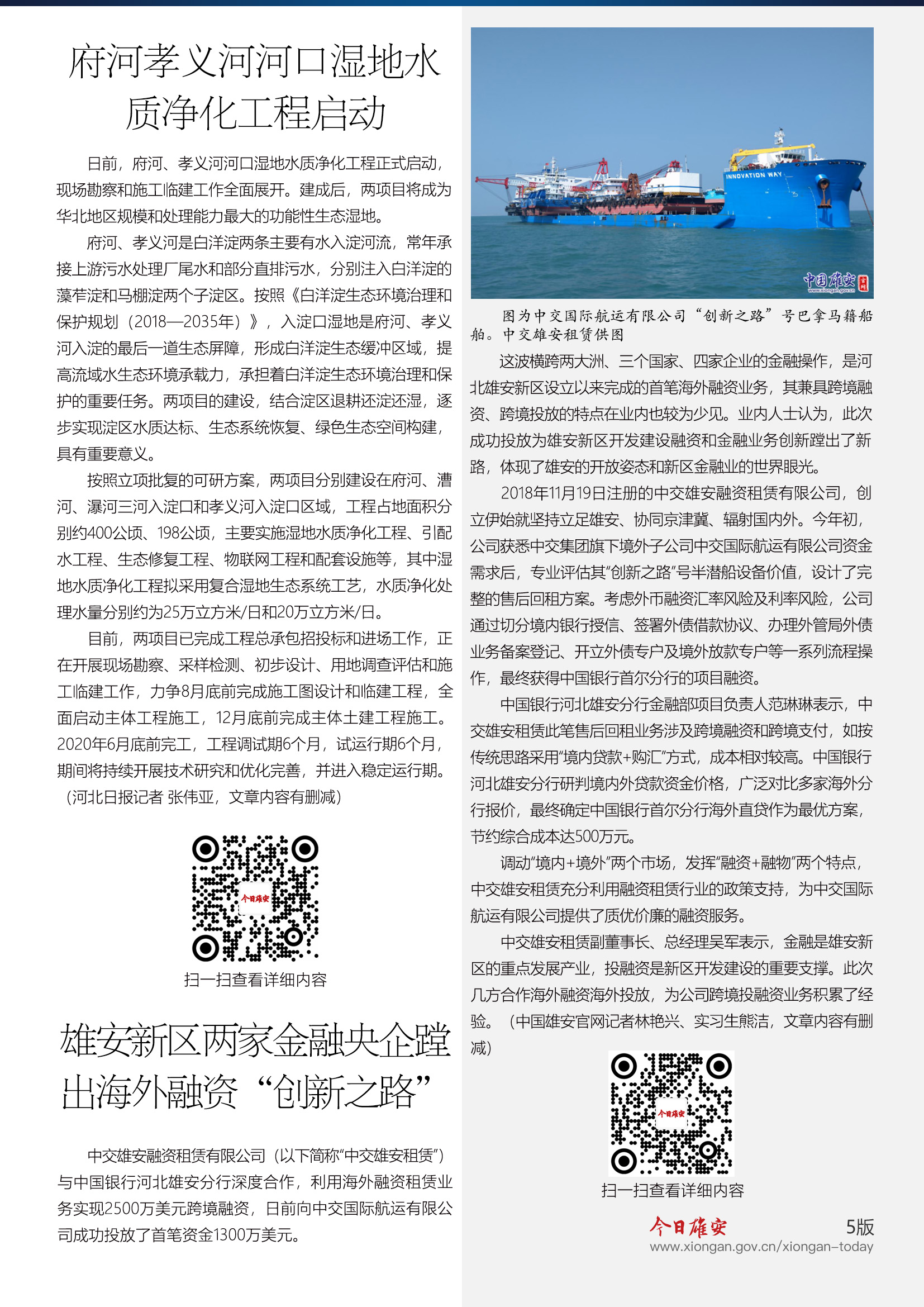雄安新区两家金融央企蹚出海外融资“创新之路”