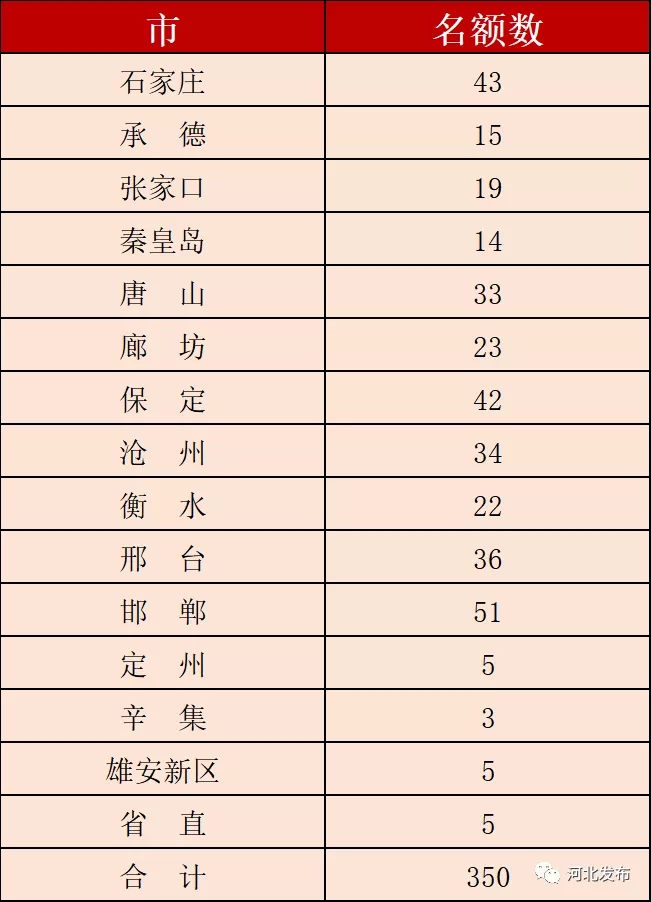 河北省师德标兵推荐人选名额分配表
