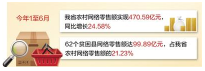 开网店、做直播……受益于电商扶贫,越来越多像林艳文一样的农村贫困人口通过电商实现了增收脱贫。近年来,我省全力推动电子商务与农村贫困地区特色产业深度融合,不断拓展电商扶贫渠道,助力全省脱贫攻坚。今年1至6月,我省农村网络零售额实现470.59亿元,同比增长24.58%,增速较全国农村高出2.18个百分点。62个贫困县网络零售额合计实现99.89亿元,占我省农村网络零售额的21.23%。