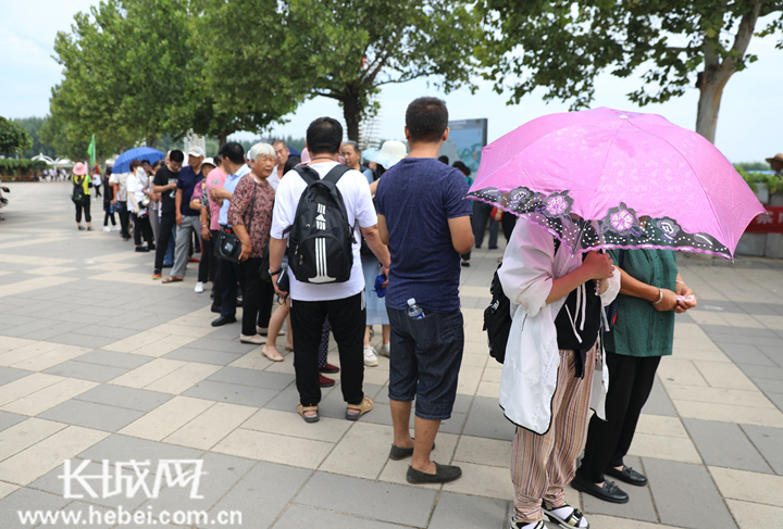 白洋淀码头,排队等待入淀的游客。何希阳 摄