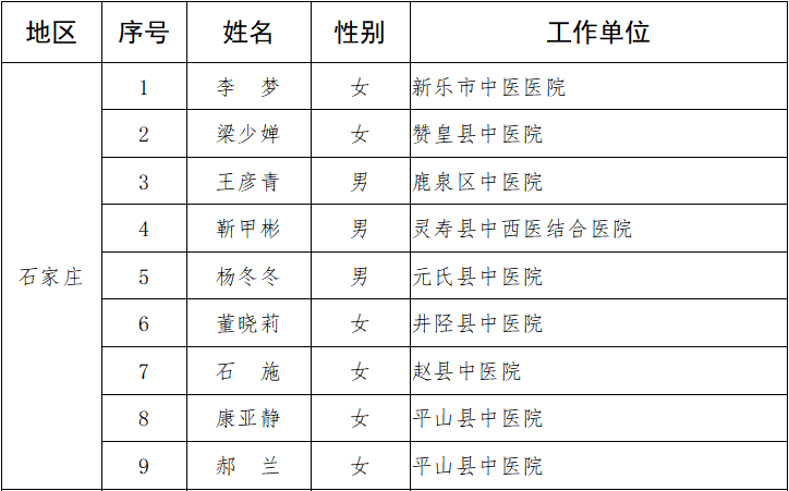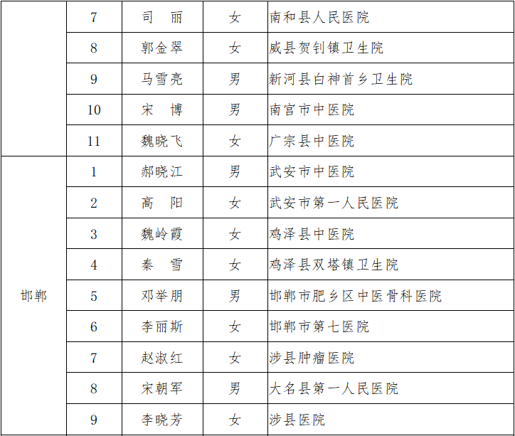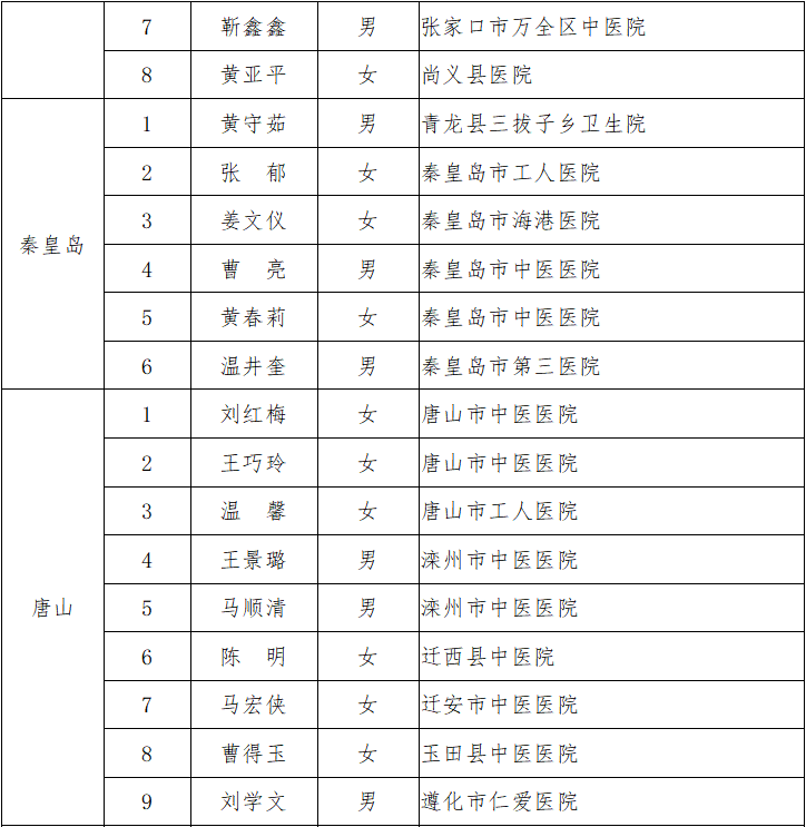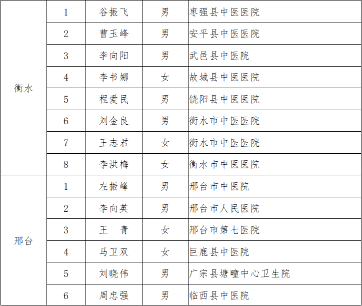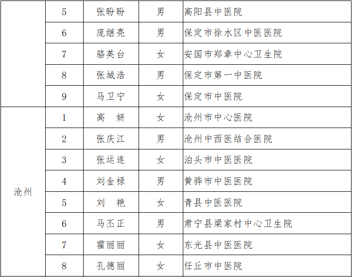 附件:2019年河北省基层中医临床技术骨干培养项目培养对象名单